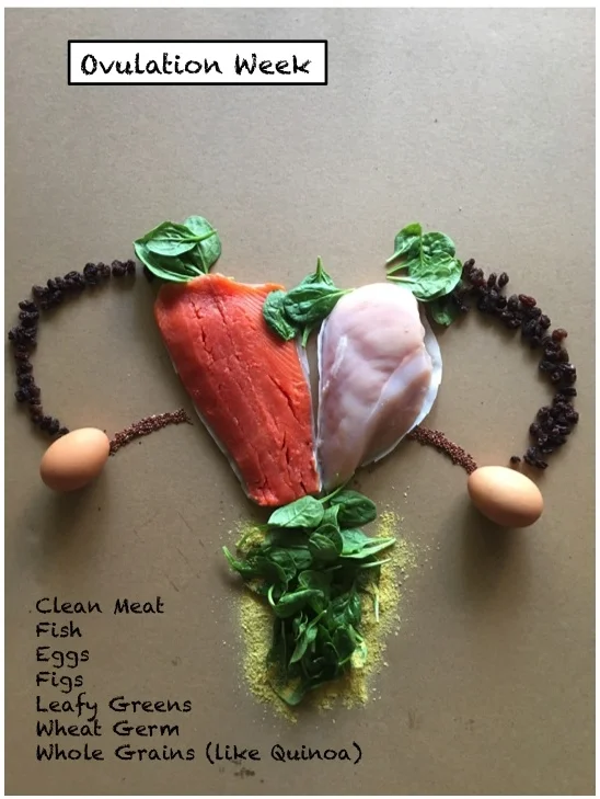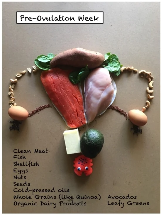 Eat yin-nourishing foods leading up to ovulation to support the yin phase of your ovulation cycle, and go heavy on the foods rich in Vitamin E to support the developing follicle.